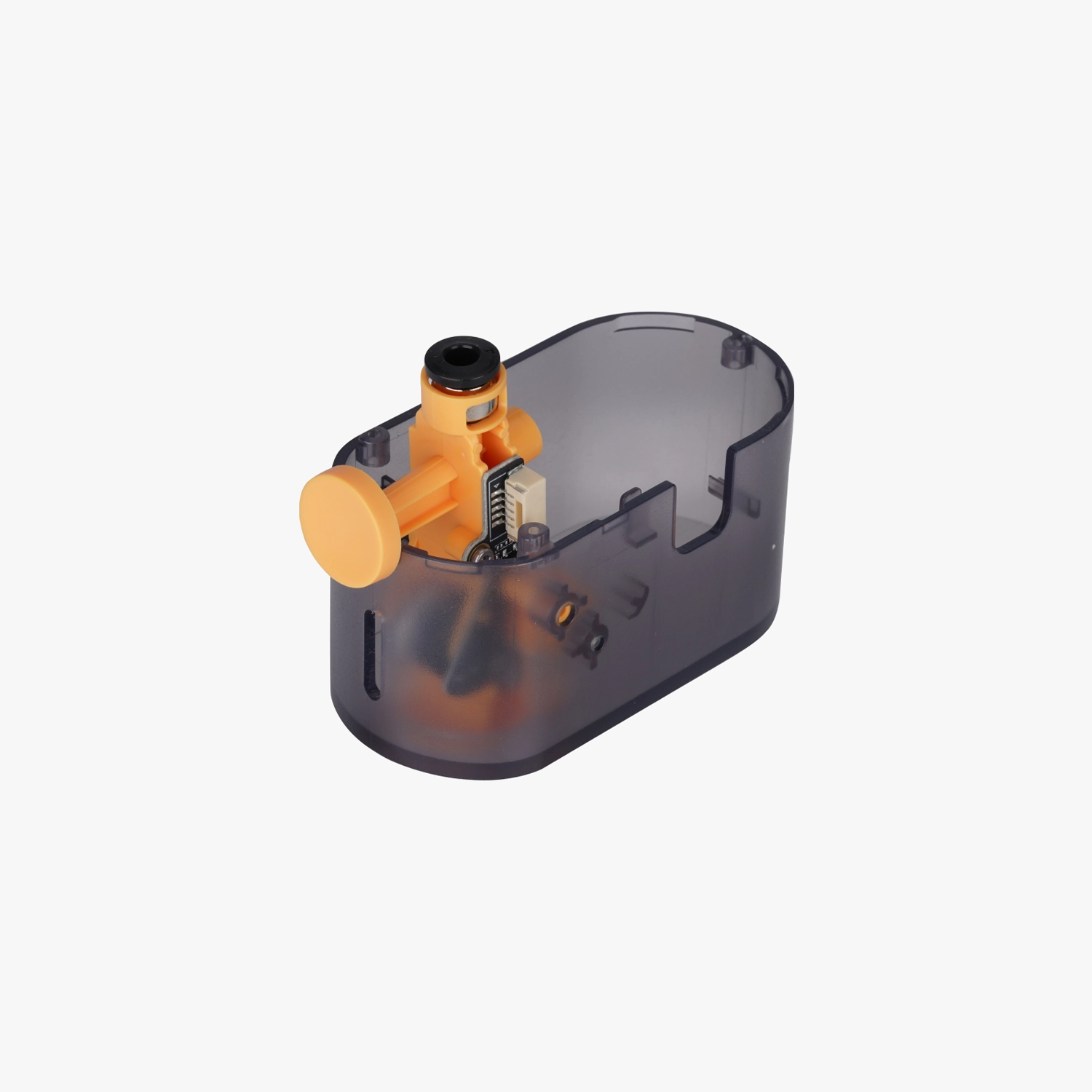 El embudo para filamento del AMS Lite, esta compuesto por un sensor de filamento y una pieza estructural. Cuando la placa del sensor detecta la inserción del filamento, la unidad de embudo lo arrastra automáticamente hacia el alimentador. Si hay alguna anomalía en la inserción del filamento, el sensor lo identificará y enviará la información a la impresora 3D.
