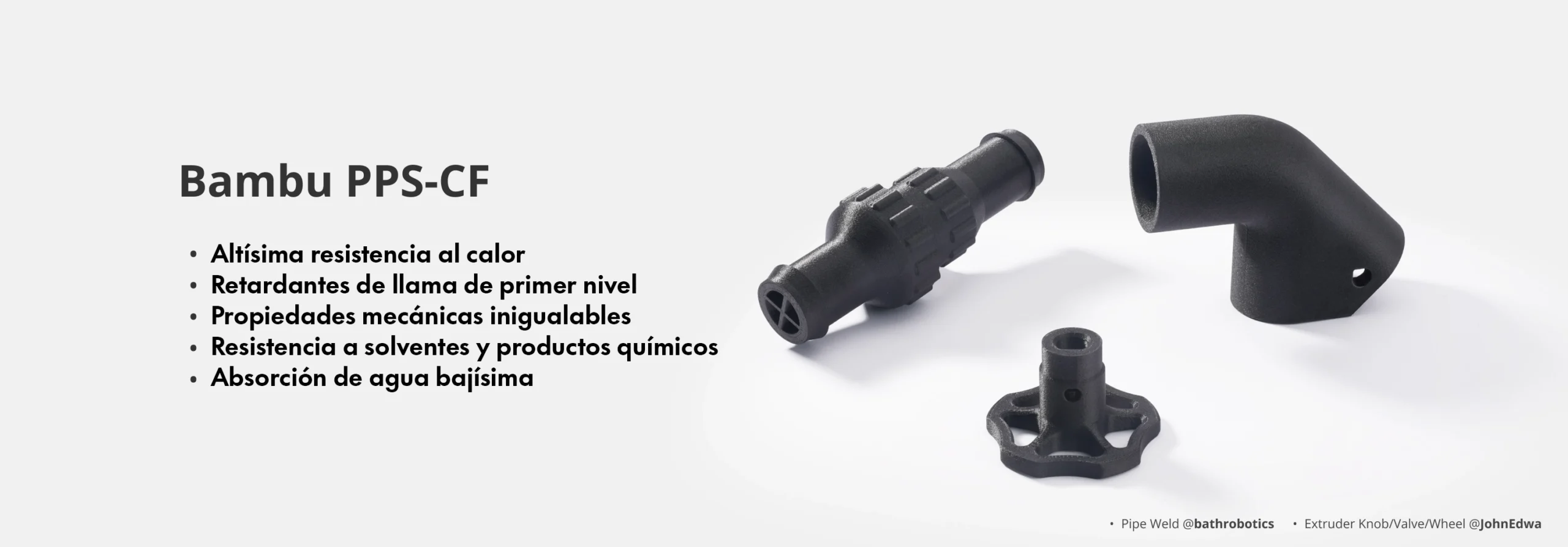 Con una tasa de absorción de humedad extremadamente baja de apenas el 0,05 %, el PPS-CF garantiza que sus propiedades mecánicas y térmicas se mantengan estables incluso en condiciones de humedad. A diferencia del PA-CF convencional, que puede ablandarse y degradarse al exponerse a la humedad, el PPS-CF mantiene su resistencia y durabilidad. Esto lo posiciona como la opción superior para aplicaciones que requieren una alta resistencia a la humedad.